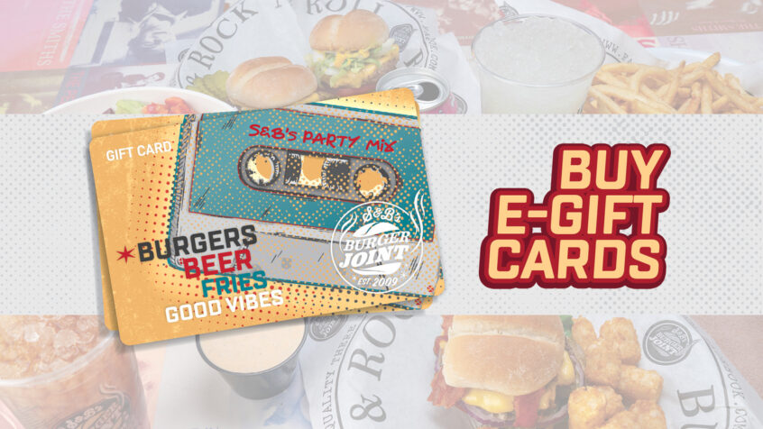 This gift card may be towards the cost of food and/or beverage at any participating S&B's Burger Joint location. This gift card is NOT VALID at the 5929 N. May Ave, OKC location. This is a gift card, not a credit or debit card. S&B's reserves the right to deactivate any gift card issued or obtained through fraud, unless prohibited by law. S&B's is not responsible for lost, stolen or damaged gift cards or any unauthorized gift card use. Except where prohibited by law, gift cards will not be replaced if lost or stolen and no cash or change will be given.